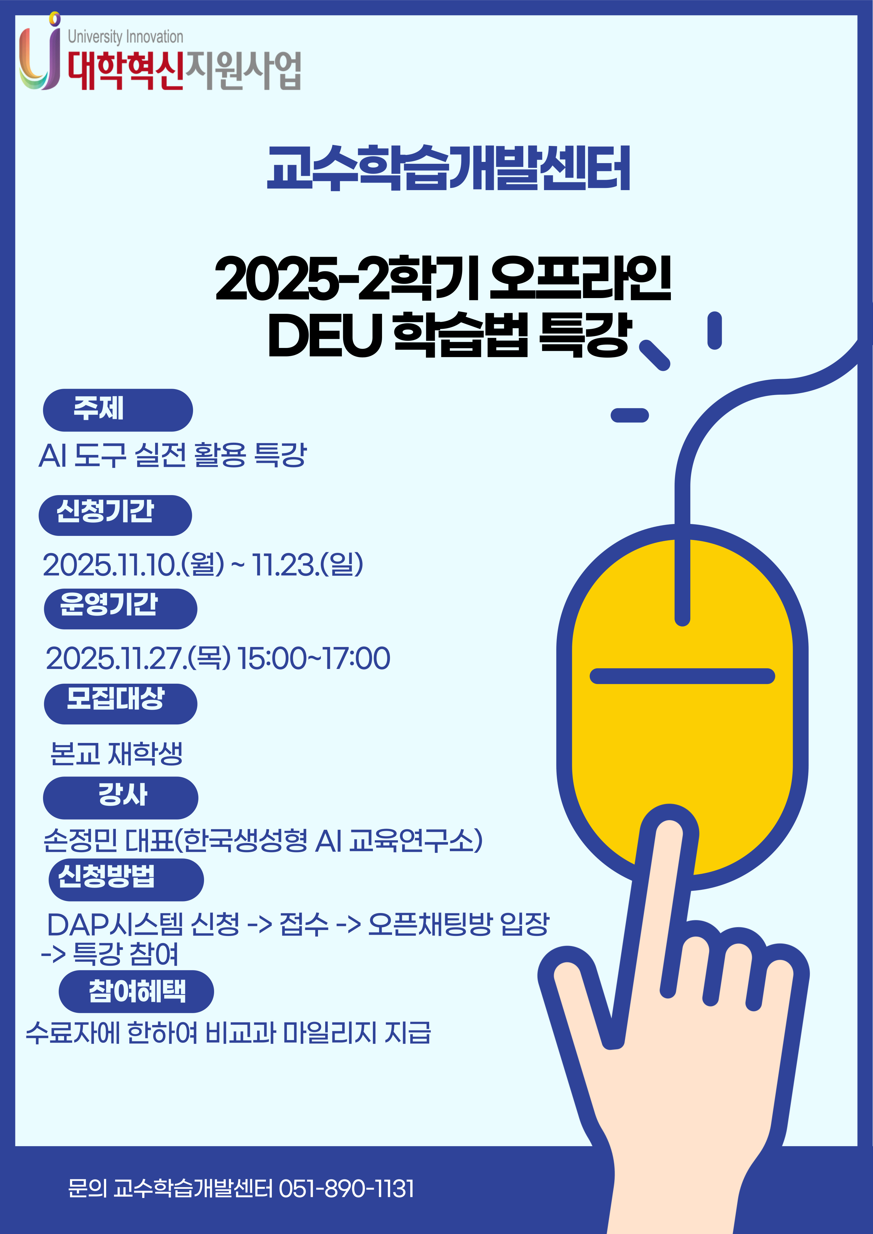 [대학혁신지원사업] 2025-2학기 오프라인 DEU 학습법 특강 신청 안내