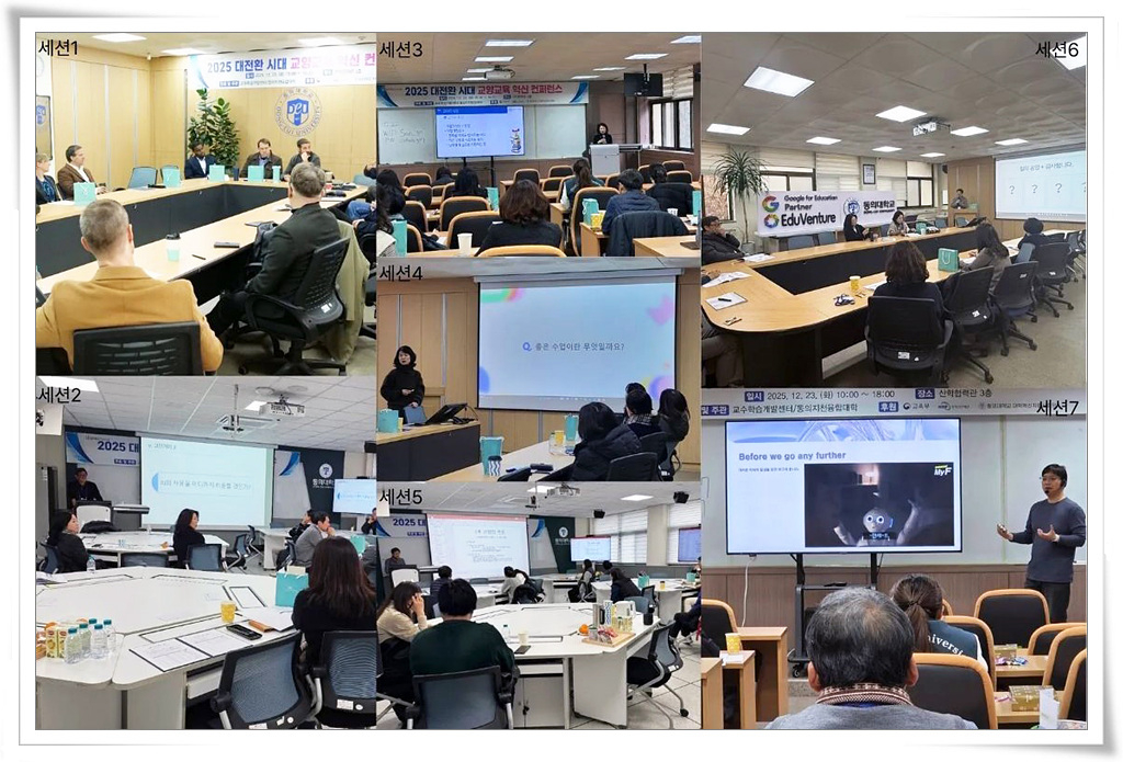 오전과 오후에 걸쳐 진행된 세션에서는 ▲영어회화▲디지털시대의 슬로리딩▲프로젝트와 기업가정신▲기본영어▲생애 및 진로설계▲AI 시대의 사고와 표현▲AI와 디지털의 인문학 등 공통교양 과목에 대한 교수법 사례가 발표되었으며 수업 현장에서 실제로 적용가능한 혁신적인 교수법과 수업 운영 방식이 활발히 공유되었다.